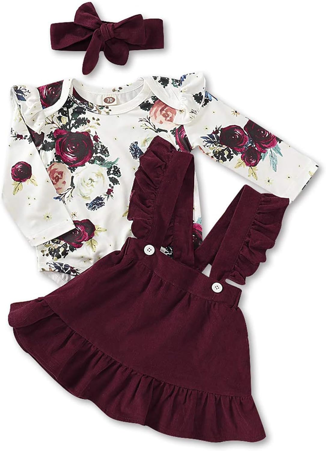 Kucnuzki Newborn Baby Girl Clothes Toddler Long Sleeve Ruffle Romper Top Infant Skirt Set Little Girl Overall Dress