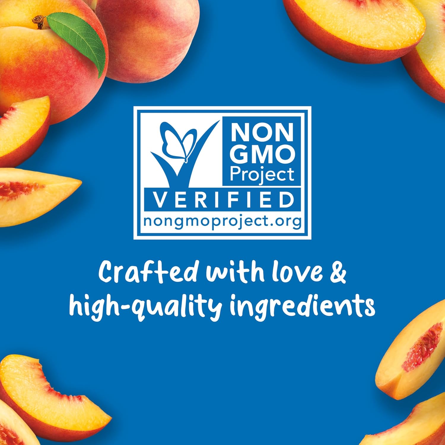 Gerber peach puree uses natural peaches that meet high quality standards for a delicious, convenient baby food