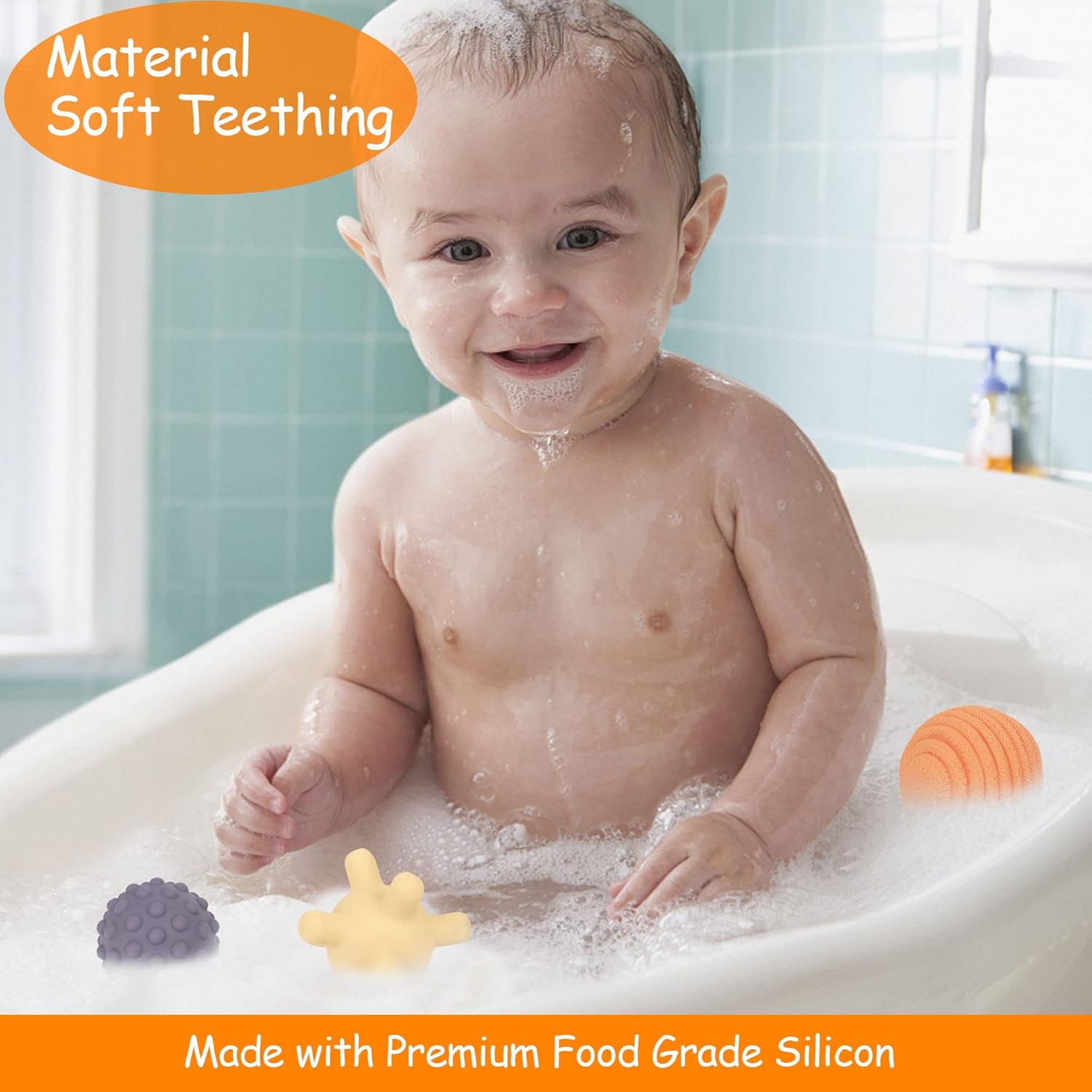 Our Montessori toys for infants 6 months+ are made of high quality, highly durable food grade silicone that is 100% BPA free, safe, non-toxic, easy to clean, and also the perfect teething toy for infants 0-6 months and guaranteed not to tear when handled vigorously! Lab tested and approved.