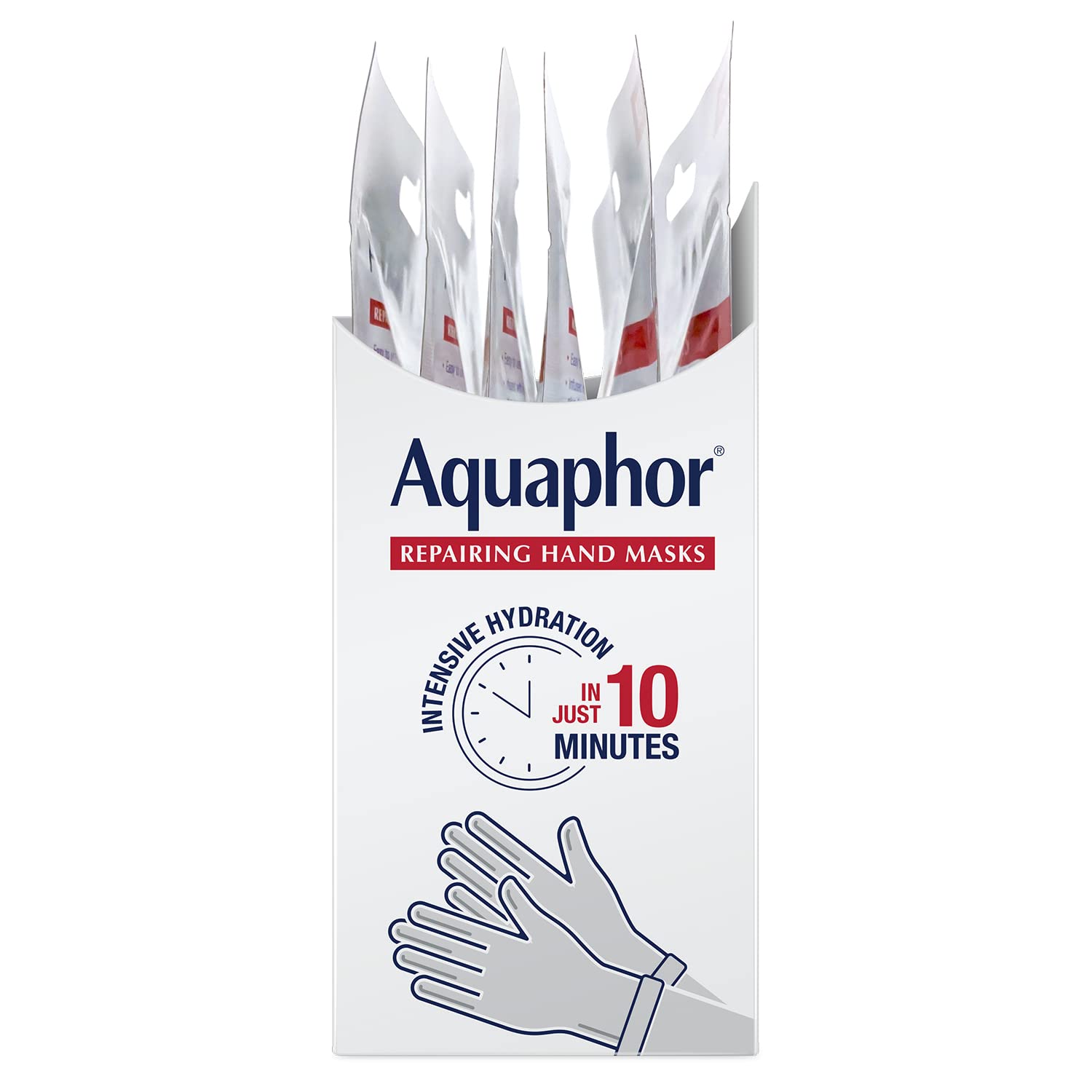 Aquaphor Repairing Hand Masks, Moisturizing Gloves for Dry Hands, Moisturizer for Dry Skin with Avocado Oil and Shea Butter, Pack of 6