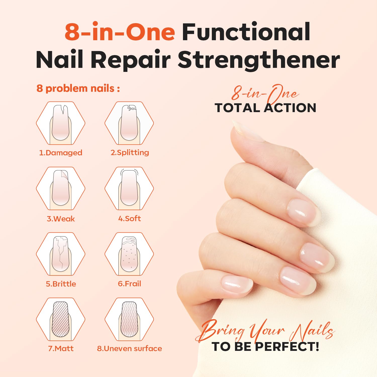 【Strong Effect Nail Strengthening Polish】: Nail growth and strengthener can repair damaged nails, which are weak, split, chips, thin, brittle, or cracked. We recommend using it once every 3 days for better effect.