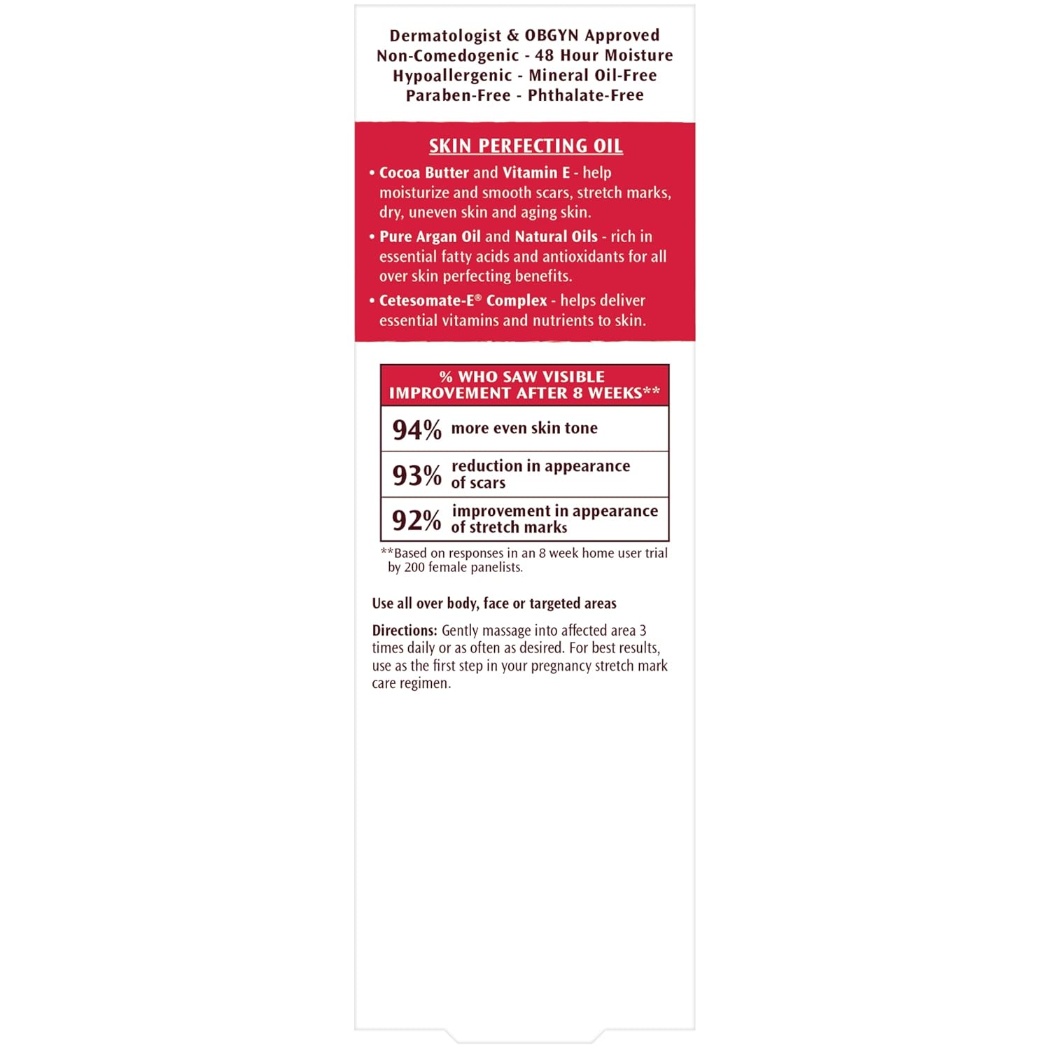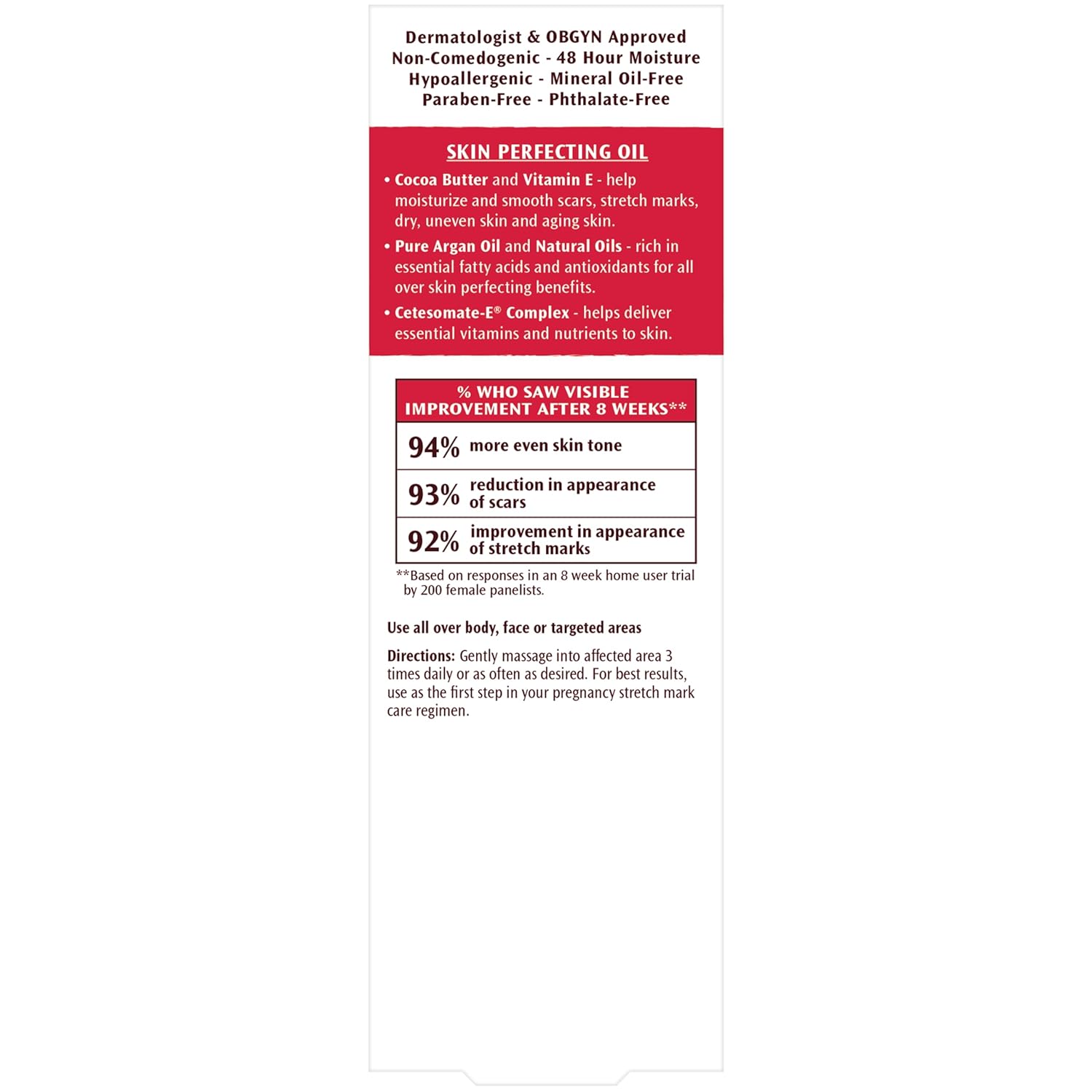 Special Formula: Made with Cocoa Butter to moisturize, Argan Oil to soften and condition, plus a blend of ingredients to hydrate and improve skin imperfections, and promote healthy skin cell rejuvenation
