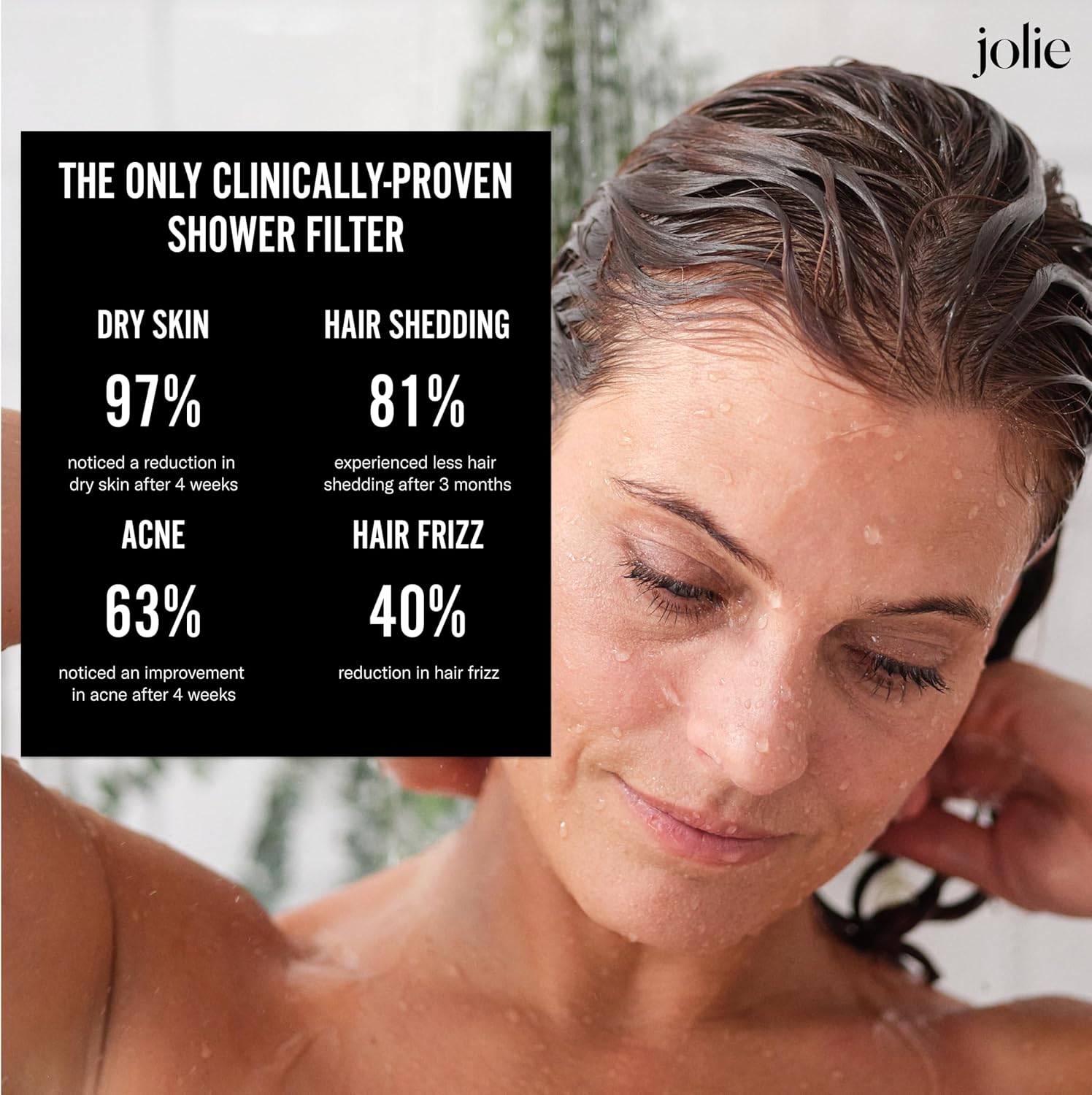 THE ONLY CLINICALLY PROVEN SHOWERHEAD TO FIGHT HAIR SHEDDING- You won’t find the results of our premium product anywhere else. Filtering your shower water with Jolie is clinically-proven to reduce hair shedding and the only shower filter available that is lab tested and verified by 158+ top publications.
