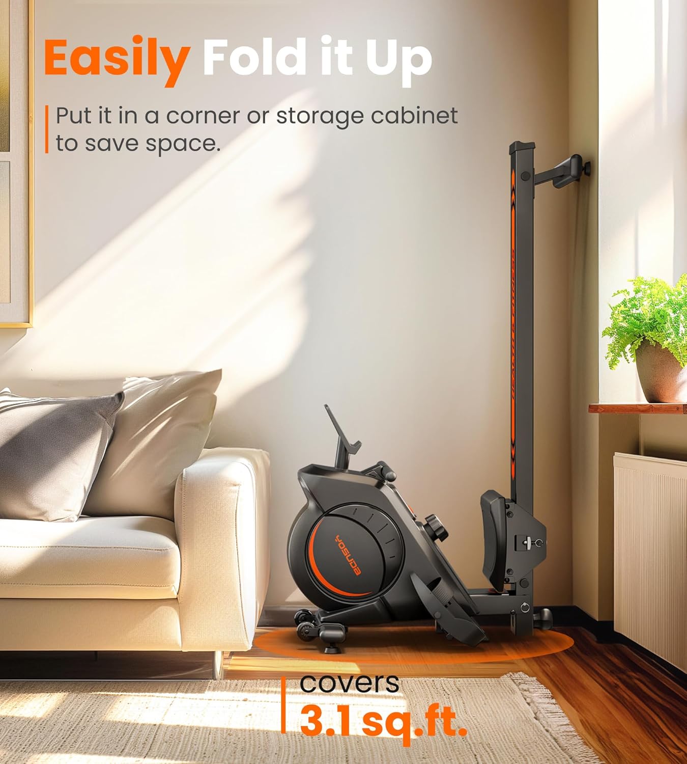 YOSUDA Magnetic/Water Rowing Machine 350 LB Weight Capacity – Foldable Rower for Home Use with Bluetooth, App Supported, Tablet Holder and Comfortable Seat Cushion