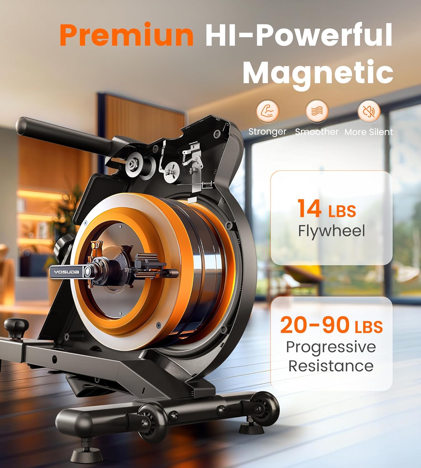 Super Quiet Rowers: Magnetic resistance system create an unbelievably smooth and nearly silent rowing, YOSUDA rowing exercise machine is very suitable for indoor exercise. It will NEVER disturb the families and virtually no maintenance requested