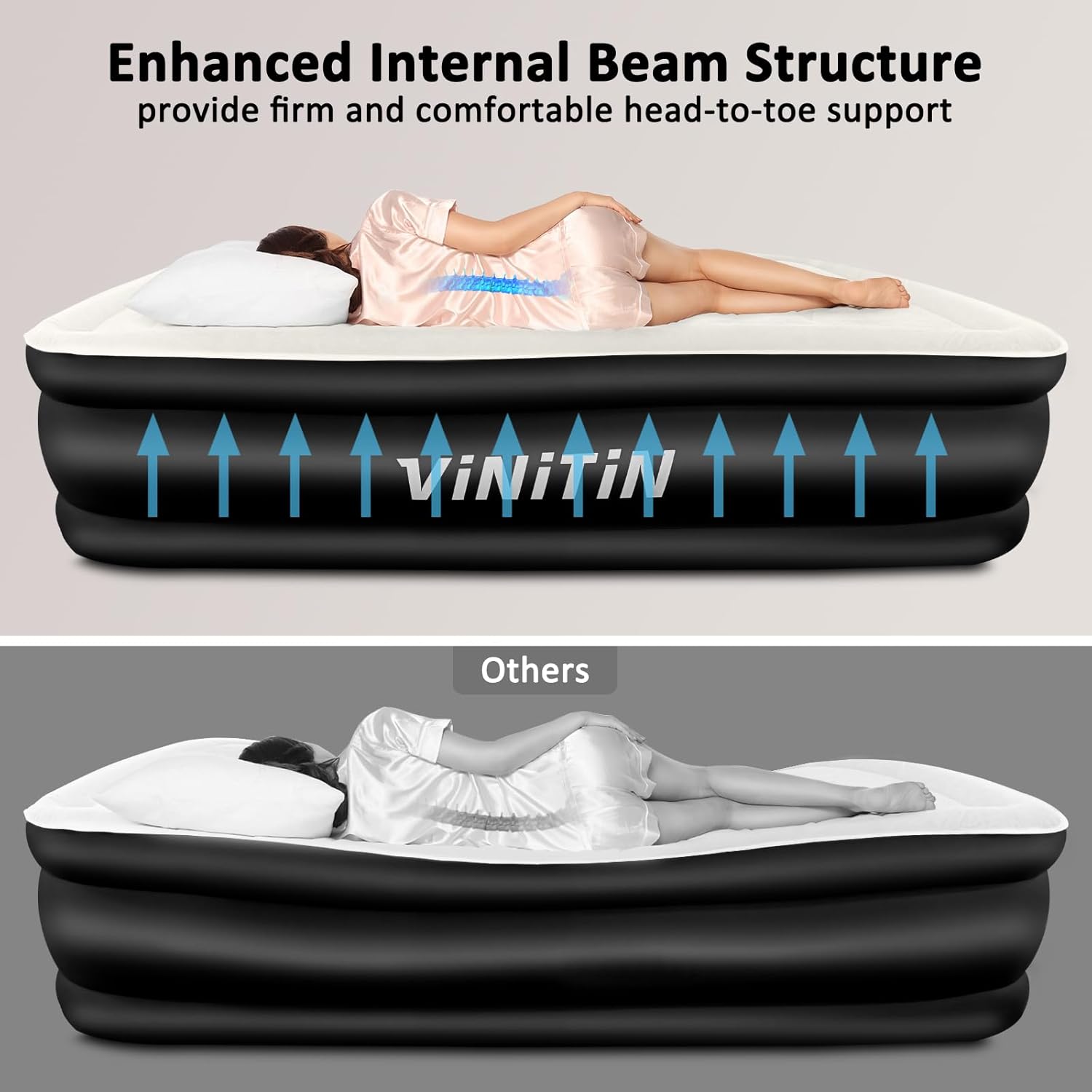Enhanced internal structure provide full body support, ensure even weight distribution. Feel solid and stay inflated all night long. Raised edge design provides more sleeping space and increases stability of the queen inflatable bed.