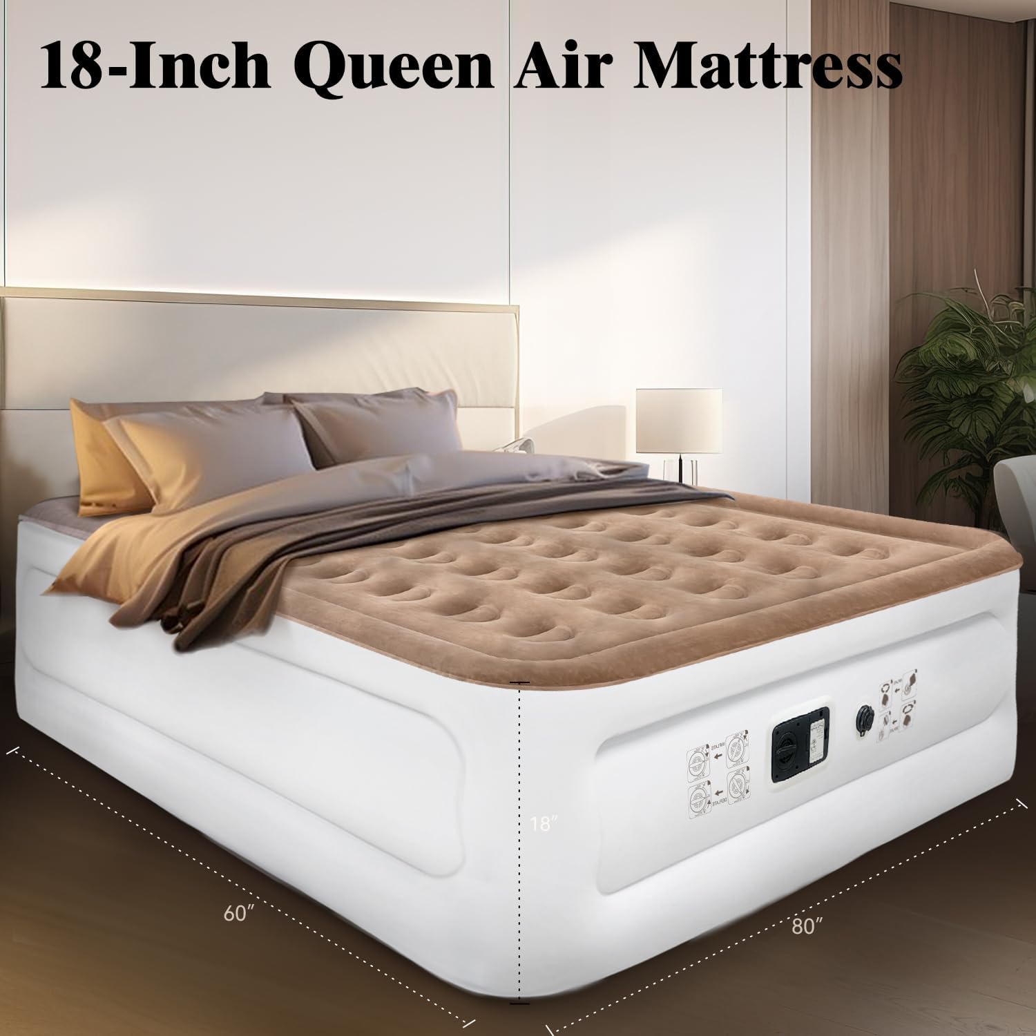 Air Mattress Queen with Built in Pump, 18 inch Luxury Double High Air Bed Fast Inflation/Deflation, Portable Inflatable Blow up Mattress with Carry Bag for Camping, Home&Guests, 650lb MAX
