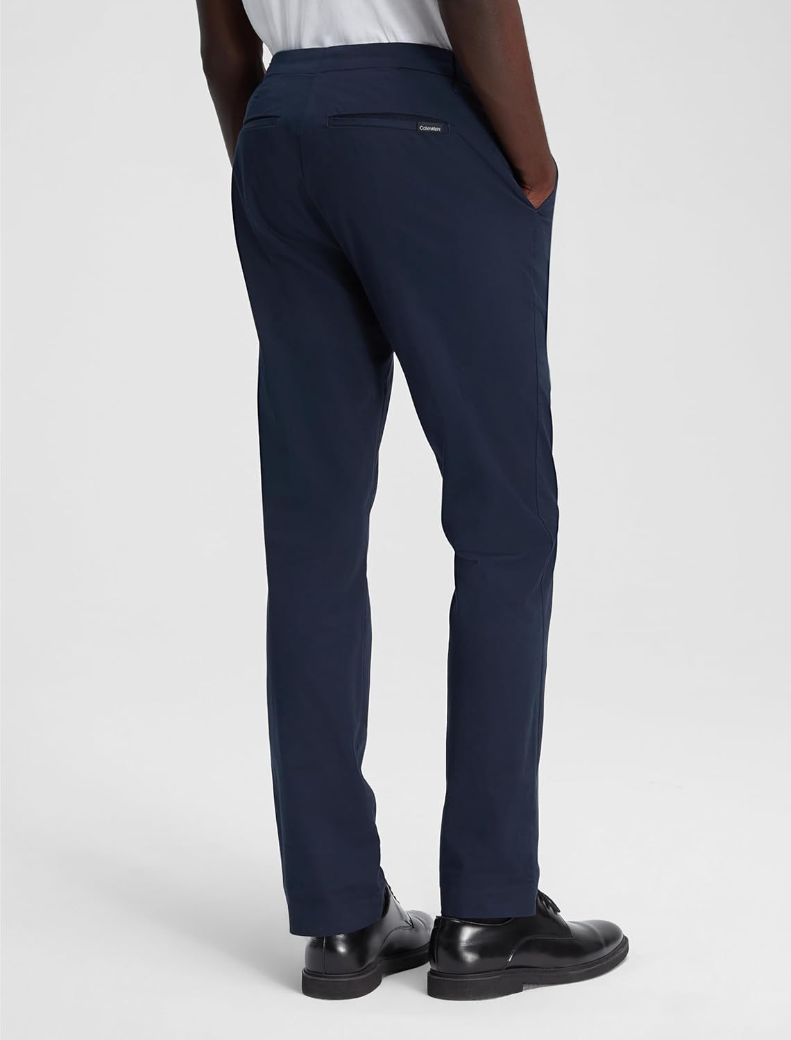 Made with a solid design and infinite flex fabric, these Calvin Klein pants feature a slim fit for an easy-to-style look. Designed with front slip pockets, back welt pockets and signature logo detailing.