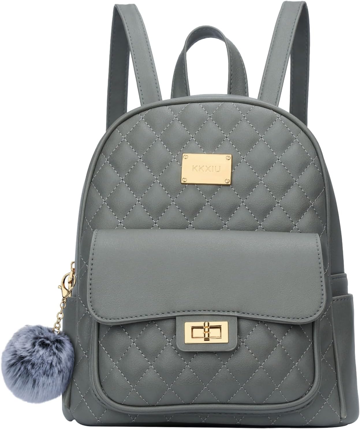 KKXIU Teen Girls Fashion 9″*11″Small Backpack Purse for Women and Ladies Quilted Synthetic Leather Mini Bookbag (a-grey)