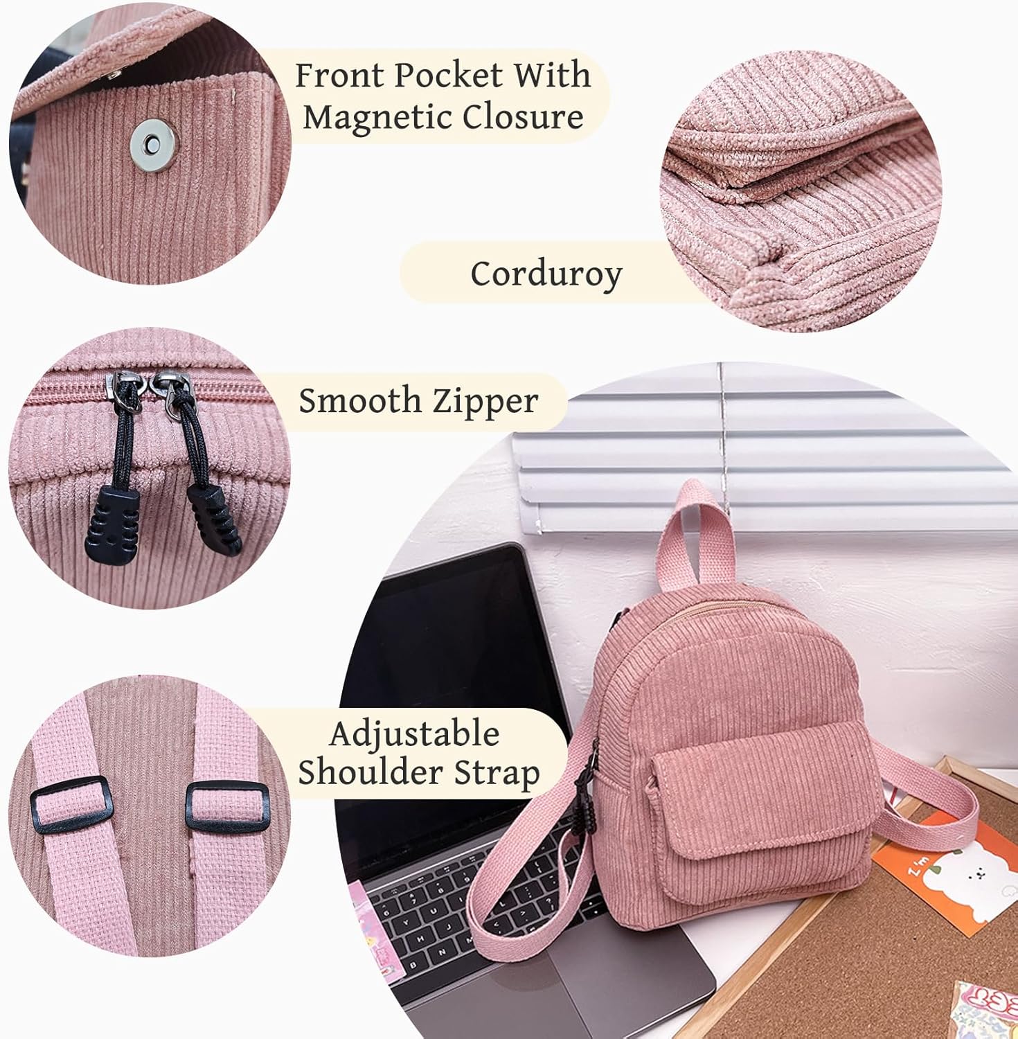 Corduroy+Polyester: The exterior of the mini backpack purse is made of wear-resistant corduroy material, which is sturdy. Its interior is made of soft polyester fibers, providing a comfortable feeling and avoiding friction with objects