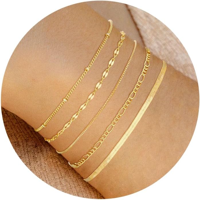 MBW Gold Bracelets for Women Trendy, Dainty 14K Gold Plated Bracelet Stack Beaded Chain Bracelet Set Thin Small Cute Paperclip Bracelets Fashion Waterproof Jewelry Gift Gold Accessories for Women