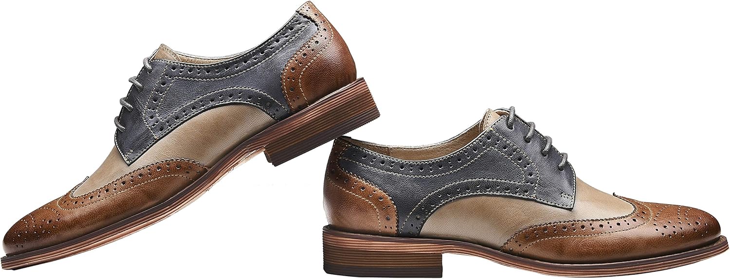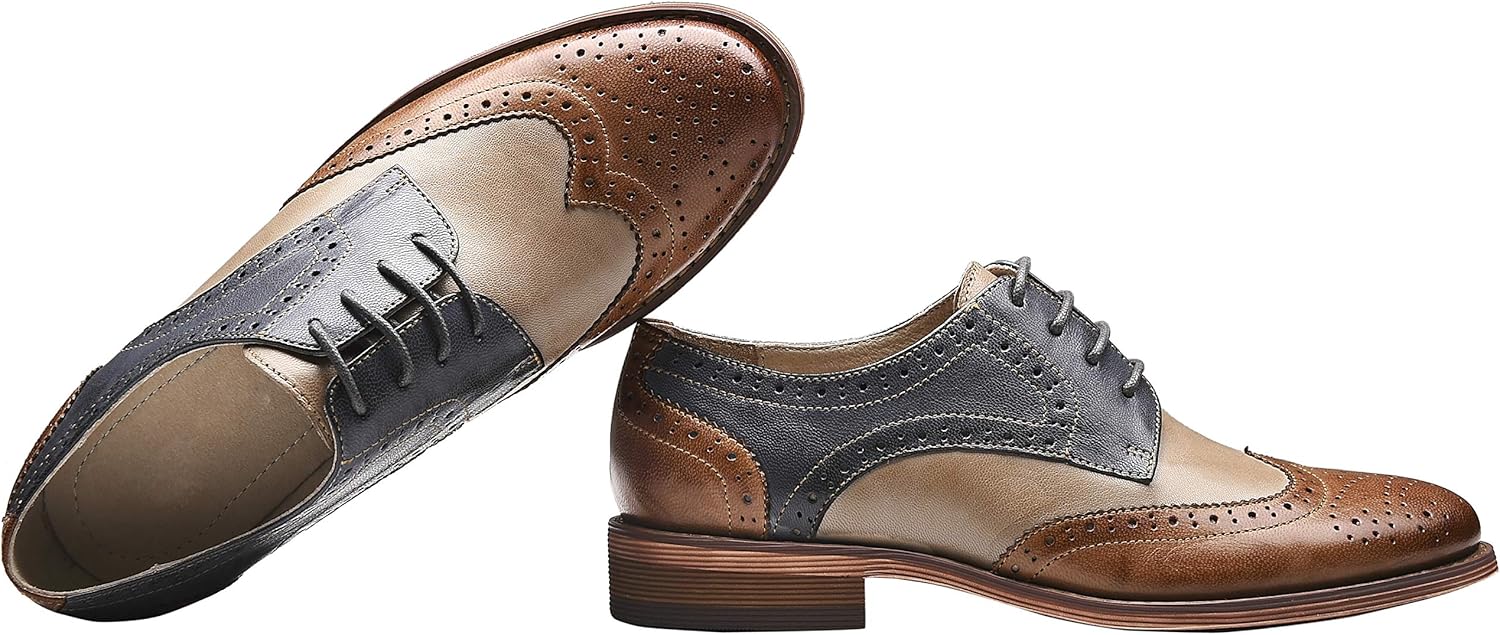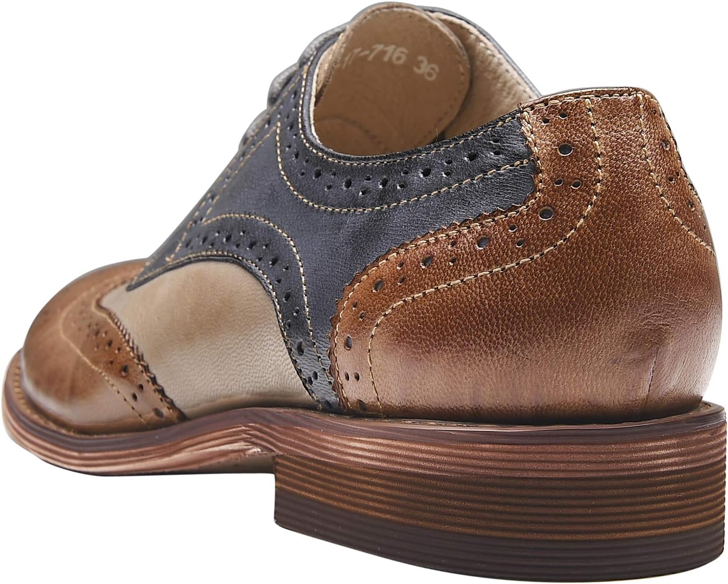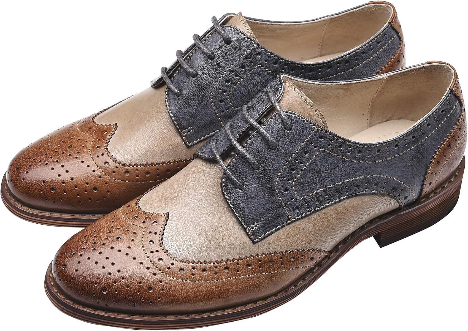 U-lite Women’s Perforated Lace-up Wingtip Multicolor Leather Flat Oxfords Vintage Oxford Shoes