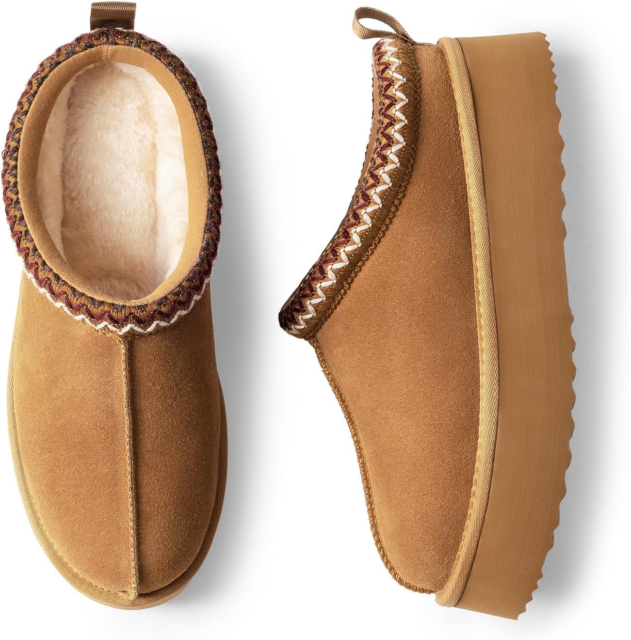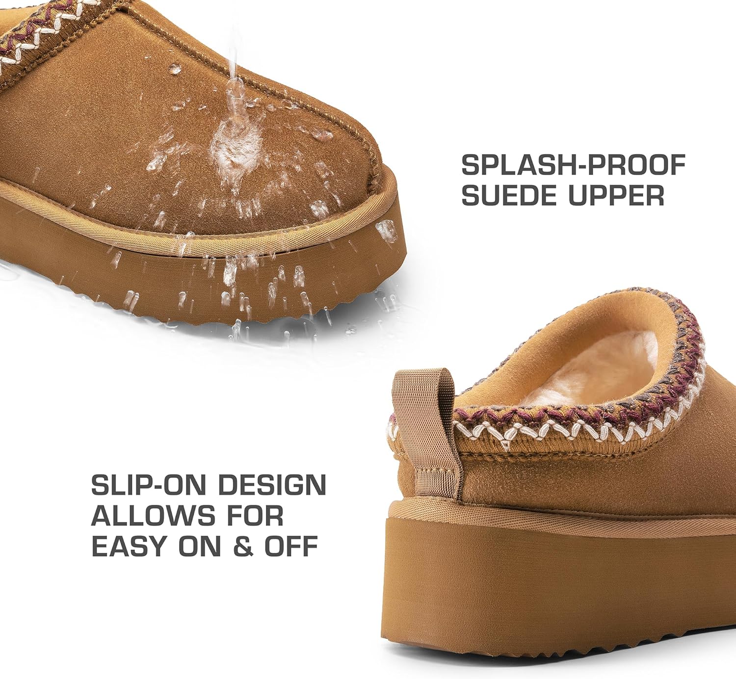 DREAM PAIRS Women’s Slippers for Women Genuine Suede Platform Cozy FuzzyEasy Women’s Platform Slip-on Slippers Winter Fluffy Warm Comfy Furry Shoes for Outdoor Indoor House