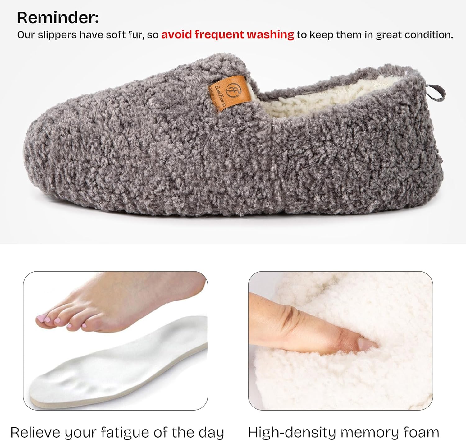EverFoams Women’s Soft Curly Full Slippers Memory Foam Lightweight House Shoes Cozy Loafer with Polar Fleece Lining