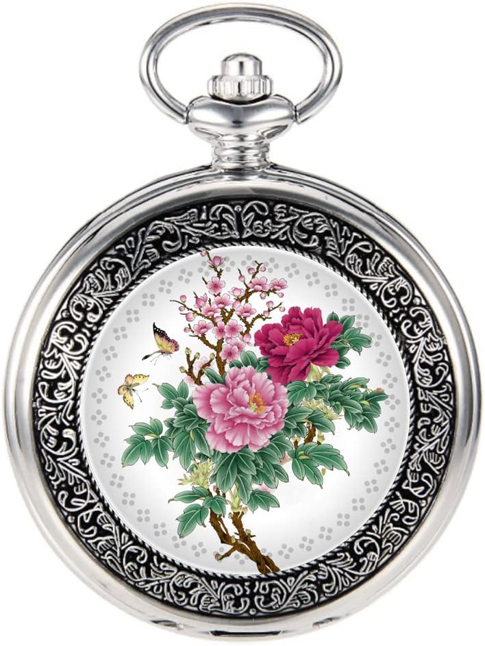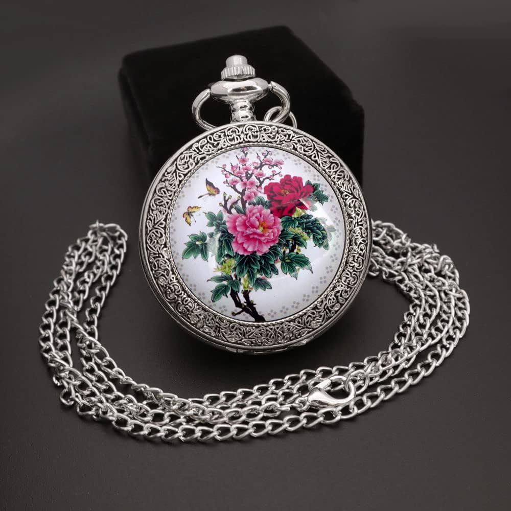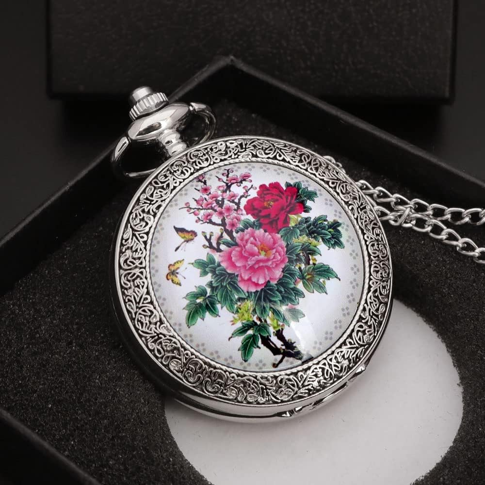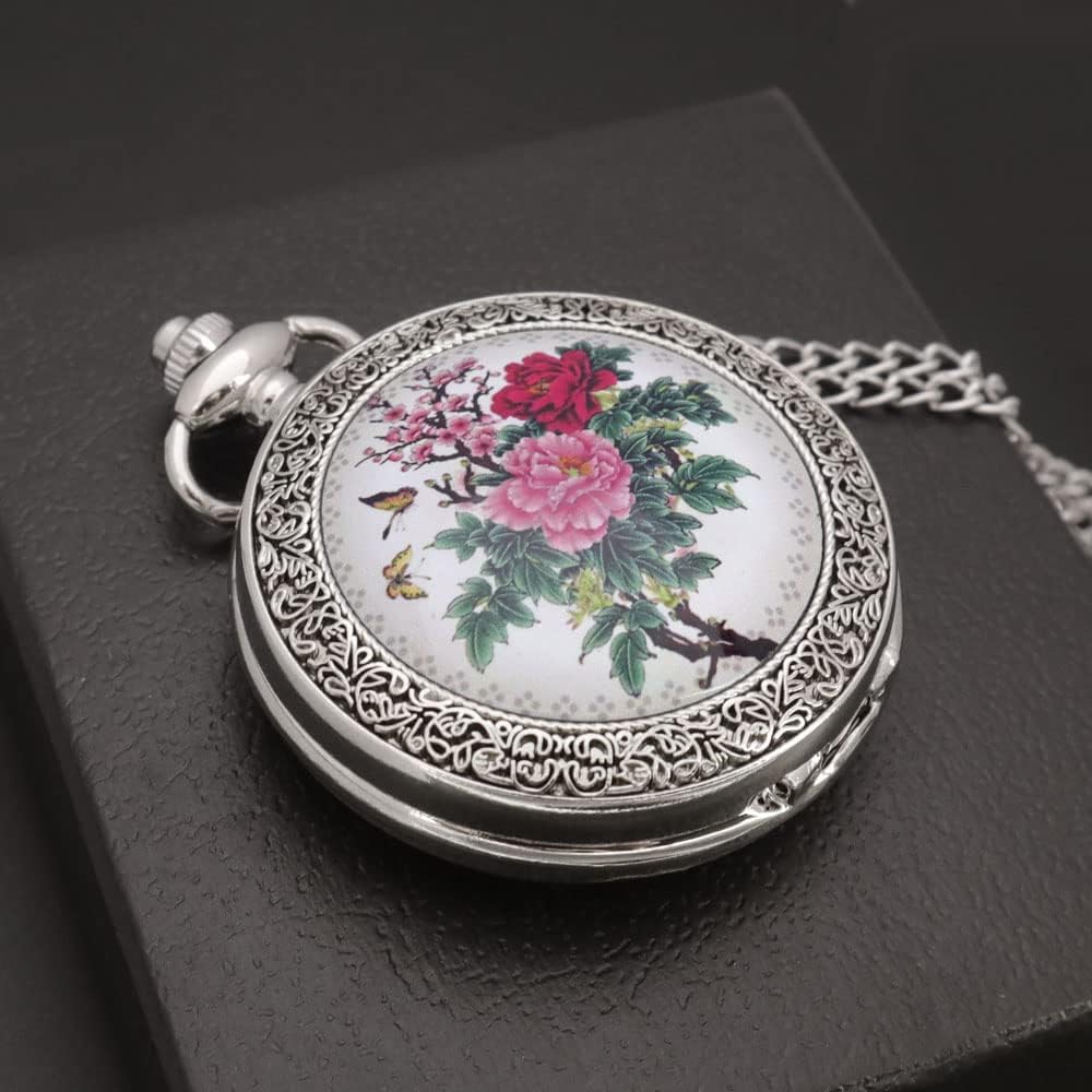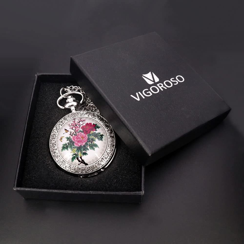 Be the first to review “VIGOROSO Quartz Beautiful Peony Bird Enamel Painting Steampunk Silver Pocket Watches in Box”
