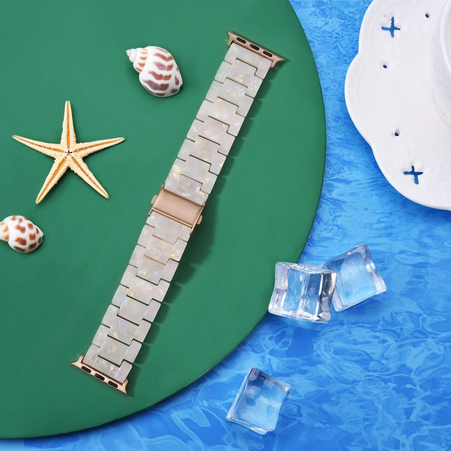 V-MORO Resin Band Compatible with Apple Watch Series 7/8/9/10 41mm/40mm/38mm/42mm Fashion Strap for iWatch Series 6/5/4/3/2/1/SE Lightweight Bracelet Wristband Replacement Women(Colorful Ivory White)
