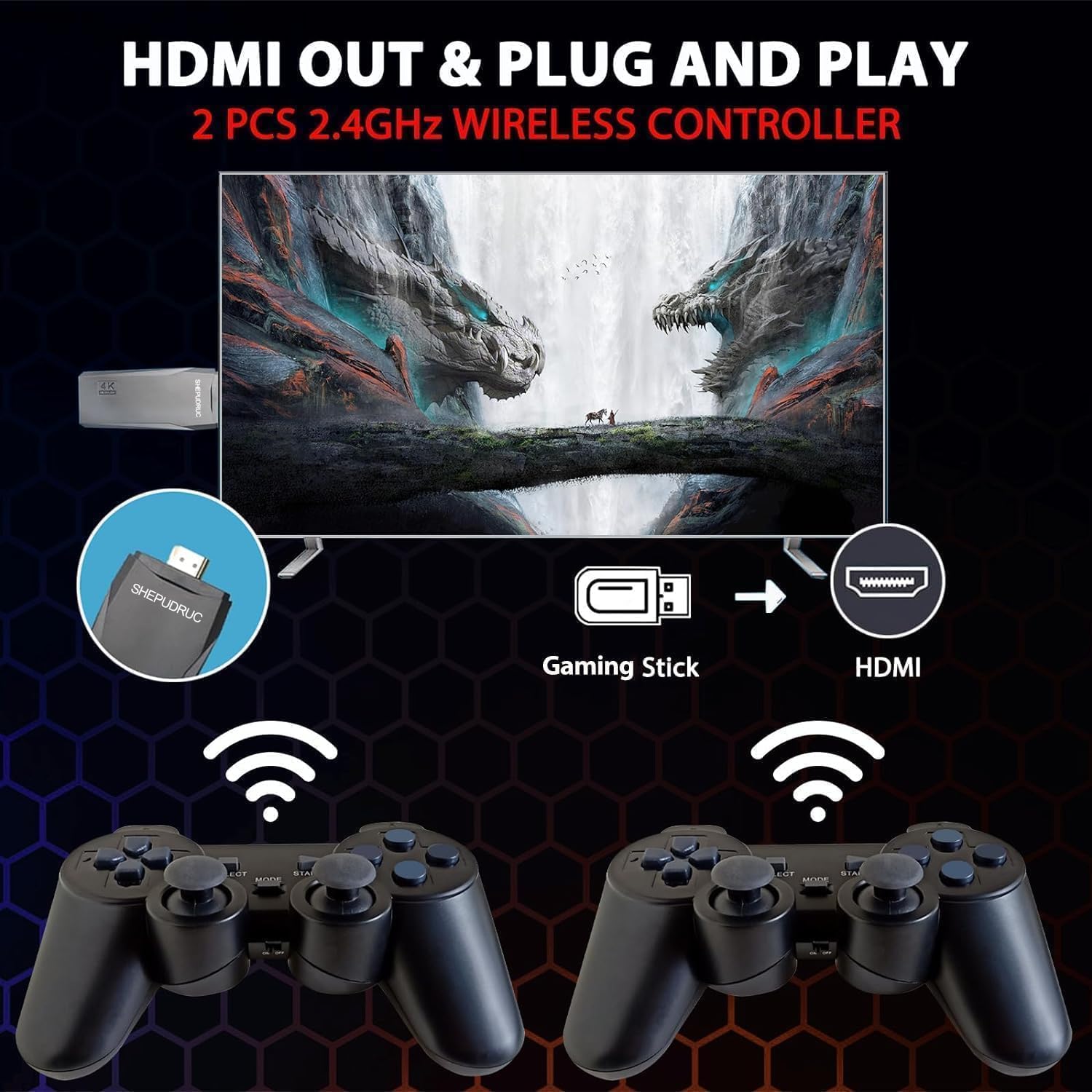 Wireless Retro Handheld Game Console Stick, Gaming Console Stick Built-in 20000+ Plug-and-Play Video Games, Equipped with 18 Simulators, 4K HDMI Output and Dual 2.4G Controller(64GB)