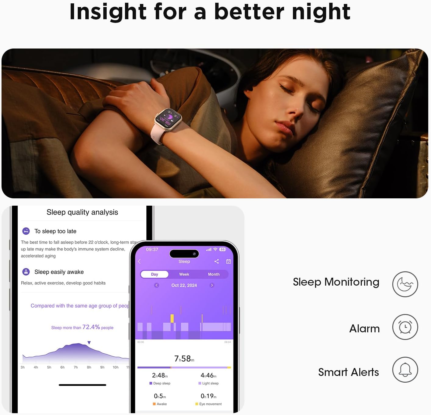 HEALTHY ACTIVITY TRACKER: Fitness watches for women tracks Heart Rate, Blood Oxygen (SpO2), Blood Pressure, and Sleep 24/7 (Deep sleep/Light sleep/REM analysis for better sleep habits by viewing sleep data). NOTE: Sleep is recorded from 9:30pm to 12:00pm; sleeping too early or too late may not be accurately recorded. Fitness watch is ideal for health-conscious users, seniors, or athletes to optimize their performance