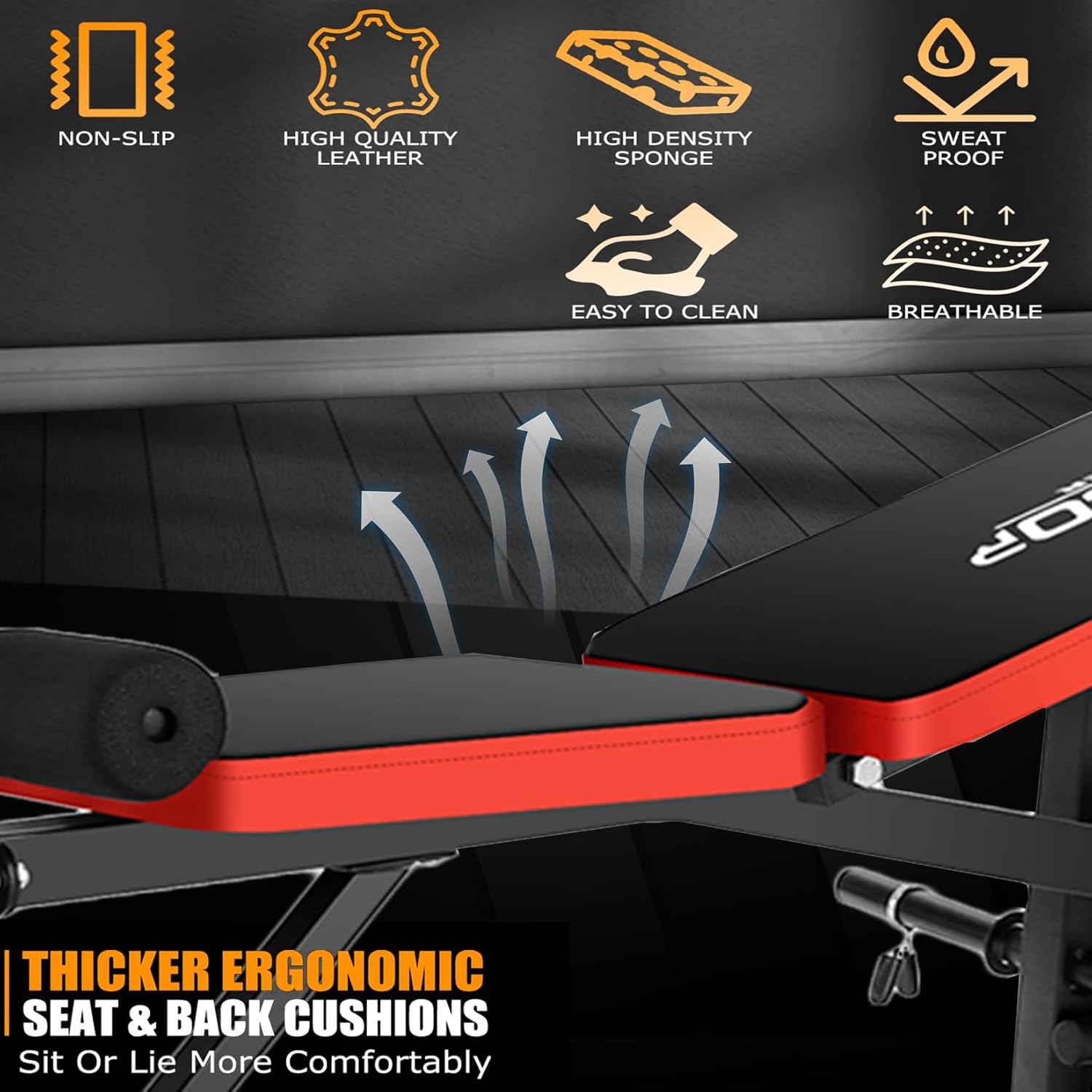 【Ergonomic Design】- Highly wear-resistant leather, anti-sweat, anti-tear, soft, widened and thickened memory foam cushions better fit the body shape, reduce muscle fatigue and bring an excellent comfort. Features sturdy non-slip rubber feet to ensure it won’t damage the floor or slip, more safety and stability during workout.