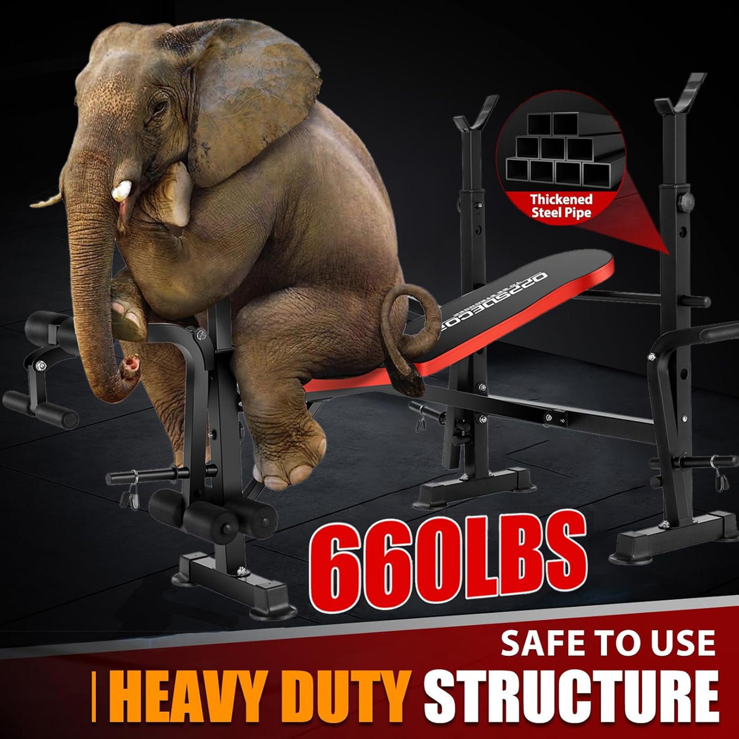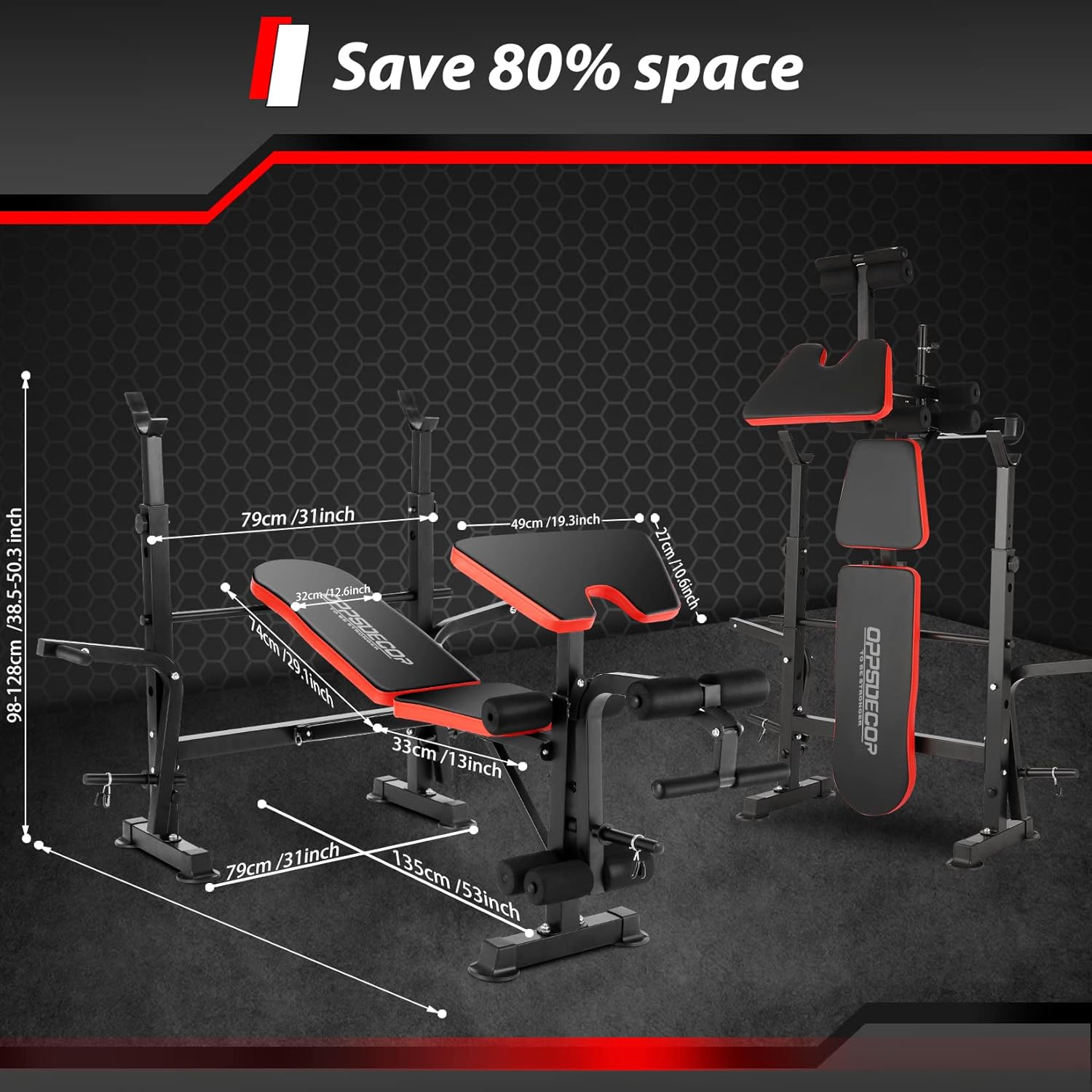 【Solid Stable and Adjustable】- OPPSDECOR Weight Bench is made of premium thickened tubular steel and widened foot base, durable and solid enough to load 660 lbs without worrying about stability. This weight bench set offers a 4-position backrest, 6 barbell rack position, 3 curl pad position for fully working out chest, back, abs, arms, legs, hips, shoulders and more muscle groups.