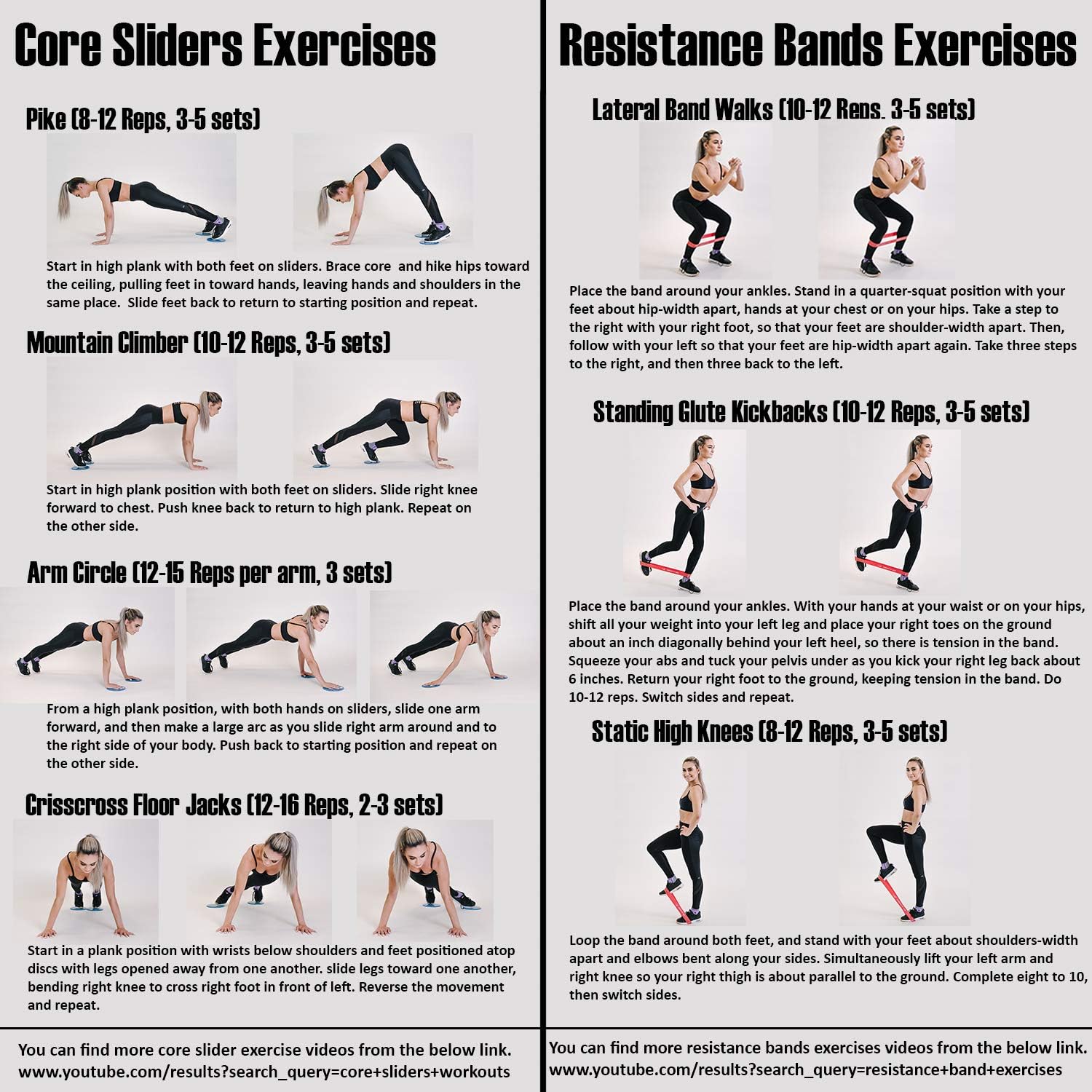 Dimensions [Core Sliders]: 7 inches in diameter, 0.5 inches in height. Resistance Bands: 12 inches in length, 0.2 inches in width.
