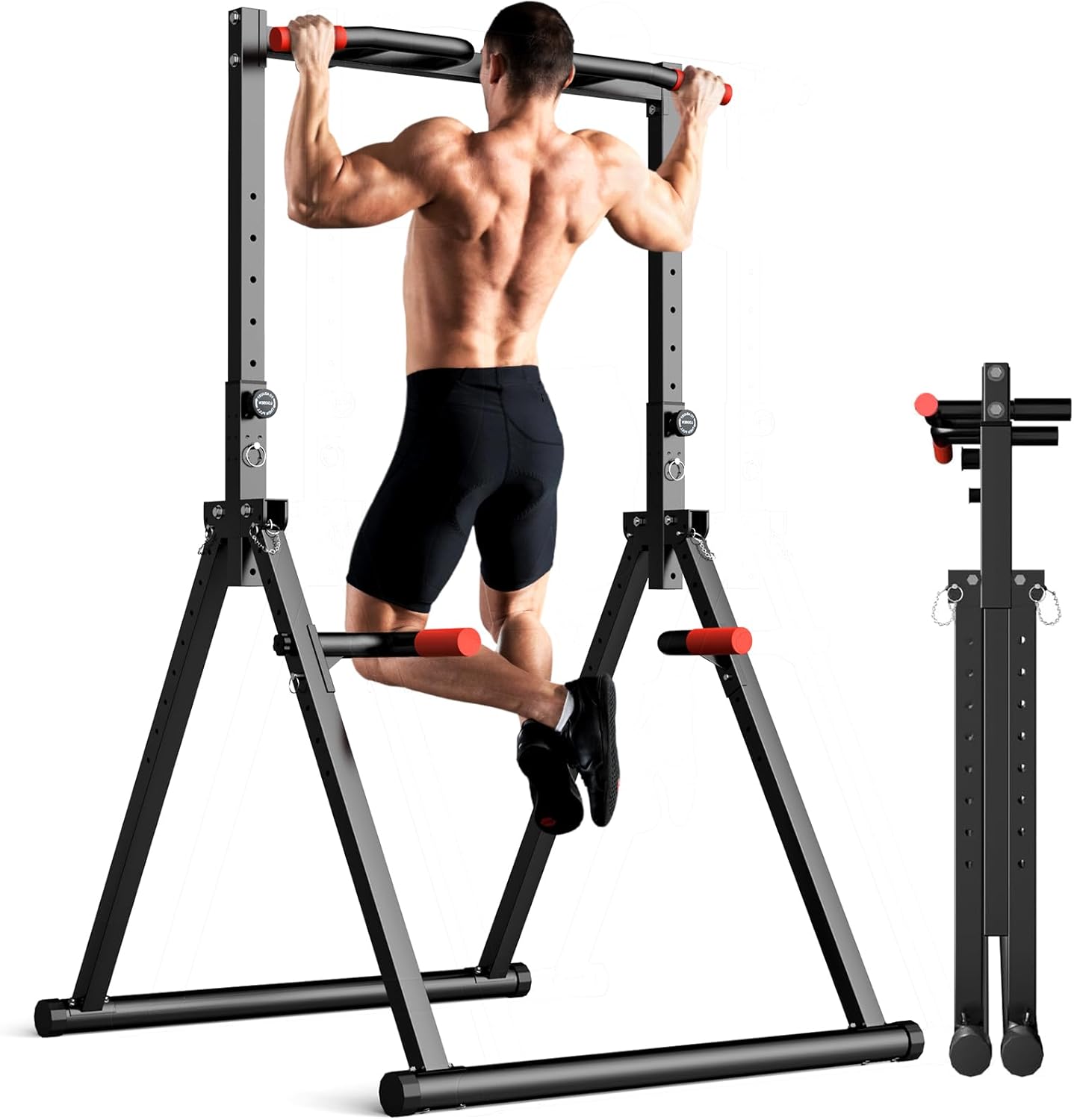 [Foldable Power Tower Dip Station] Say goodbye to bulky, unstable home gym equipment! Unlike traditional H-shaped bases that can’t be folded and lack stability, this pull up station features a unique foldable triangular design. It offers superior stability during workouts and easily folds for space-saving storage when not in use, making it perfect for your home or garage gym.