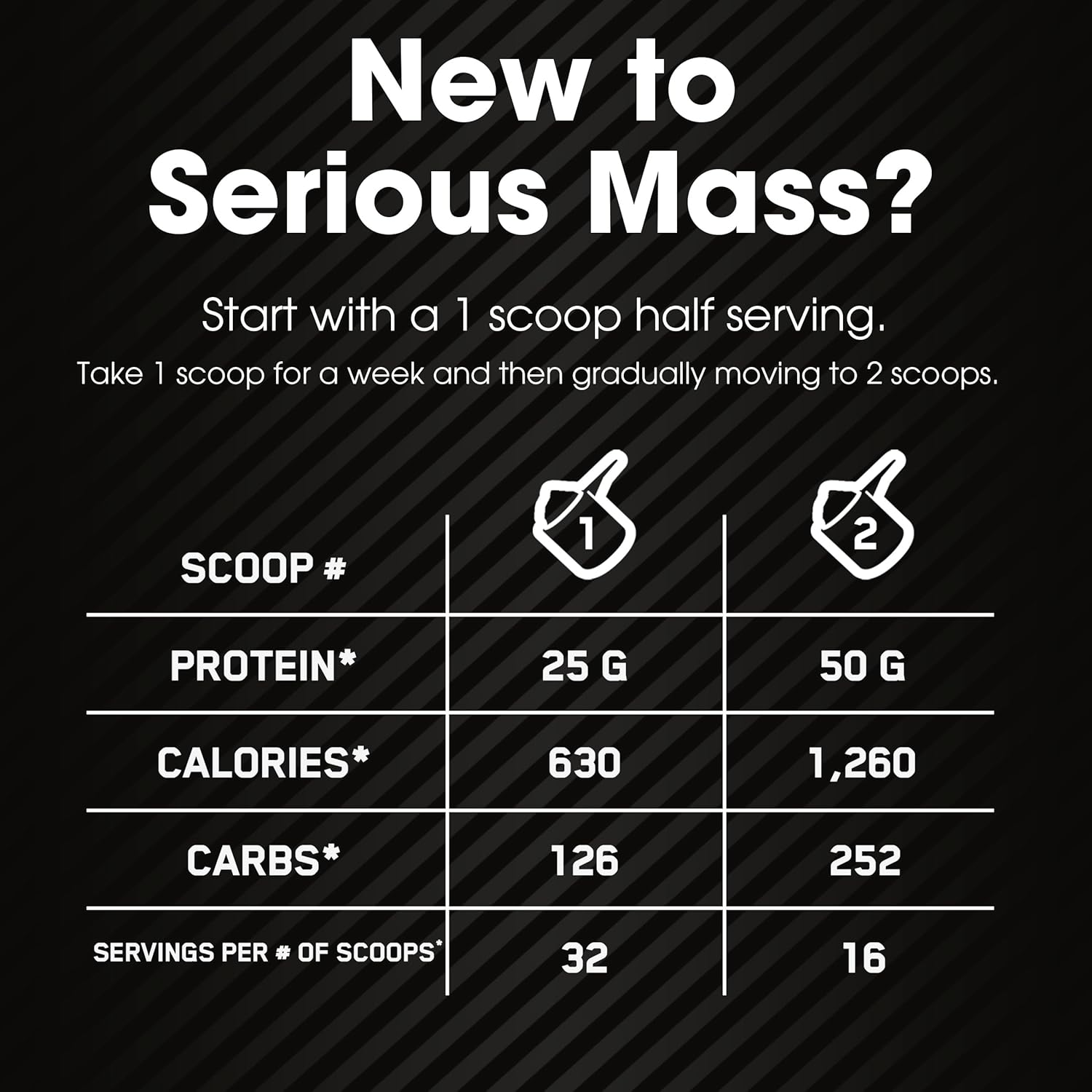 More calories. More protein. More carbs. SERIOUS MASS by Optimum Nutrition serves over 1,200 calories, 50g of blended protein, and over 249g of carbohydrates per 2-scoop serving to help you maximize your daily caloric intake – the ideal post-workout and between meals shake for sizing up your goals. SERIOUS MASS provides you with more tools to help you pack on pounds, when taken in addition to normal calorie intake and over time with regular resistance training.