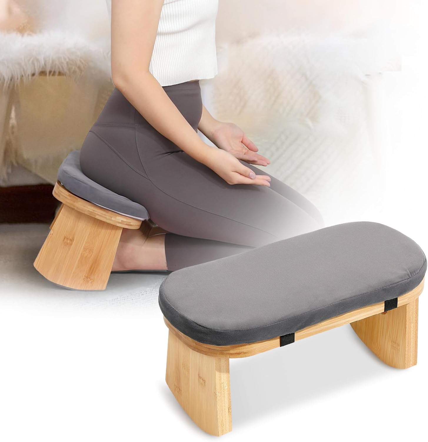 Foldable Yoga Tool: Features locking hinges for stable support. Due to its foldable design, the meditation stool can be easily put into a sports bag and taken anywhere!!