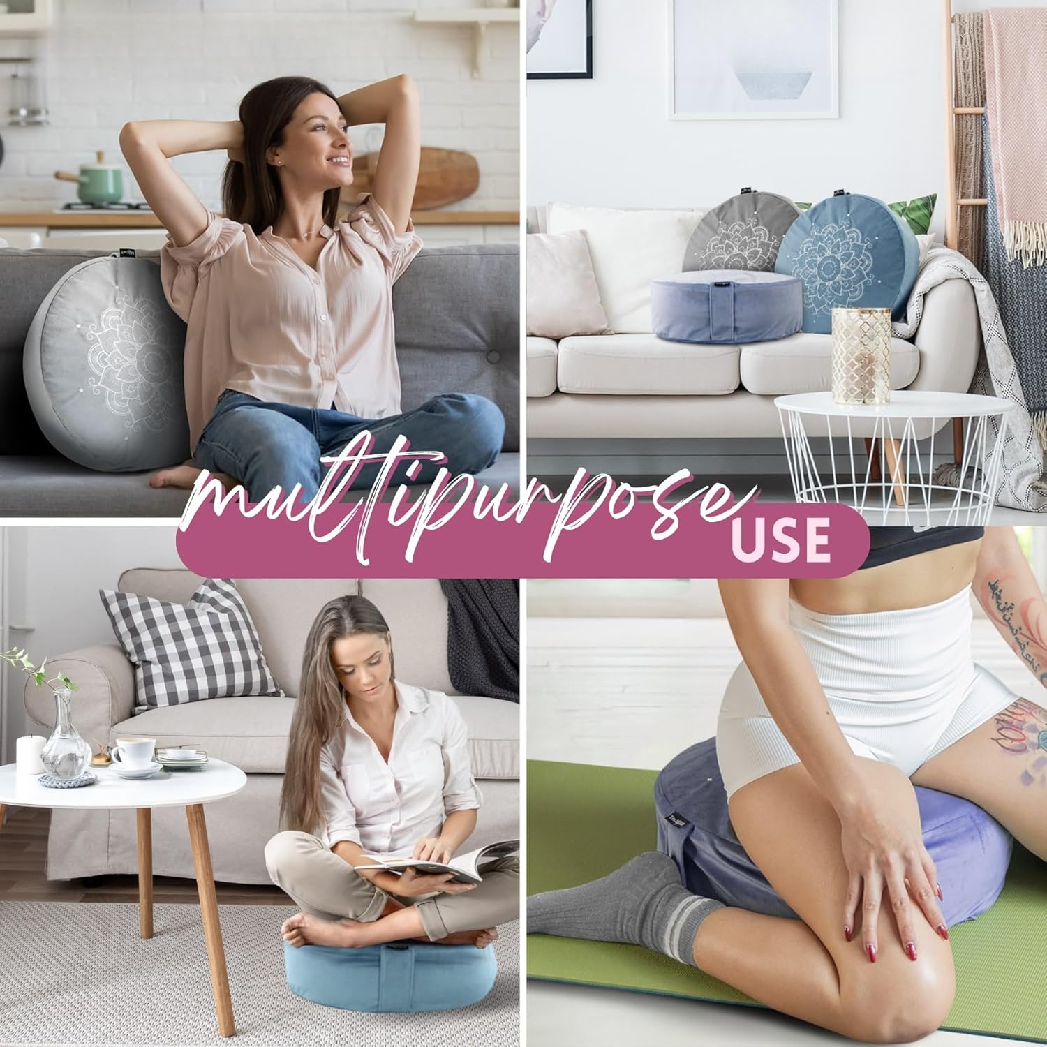 COMFORT FOR LONG SESSIONS: Our double cushions and meditation floor pillows are designed to support your posture during extended sitting with ergonomic floor seating and floor pillows for adults; Enjoy peaceful meditation with our yoga seat pillow