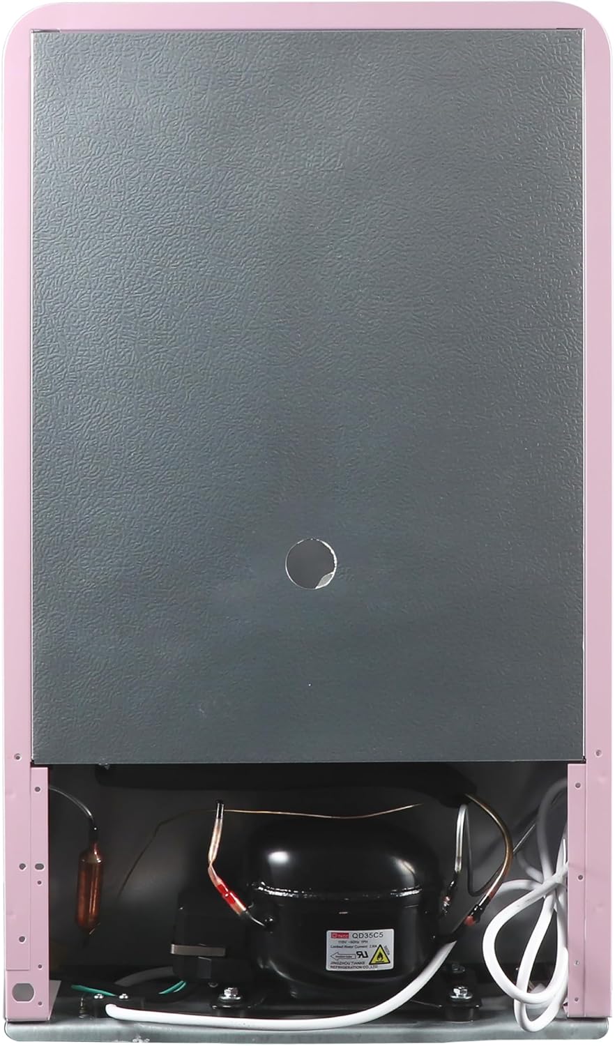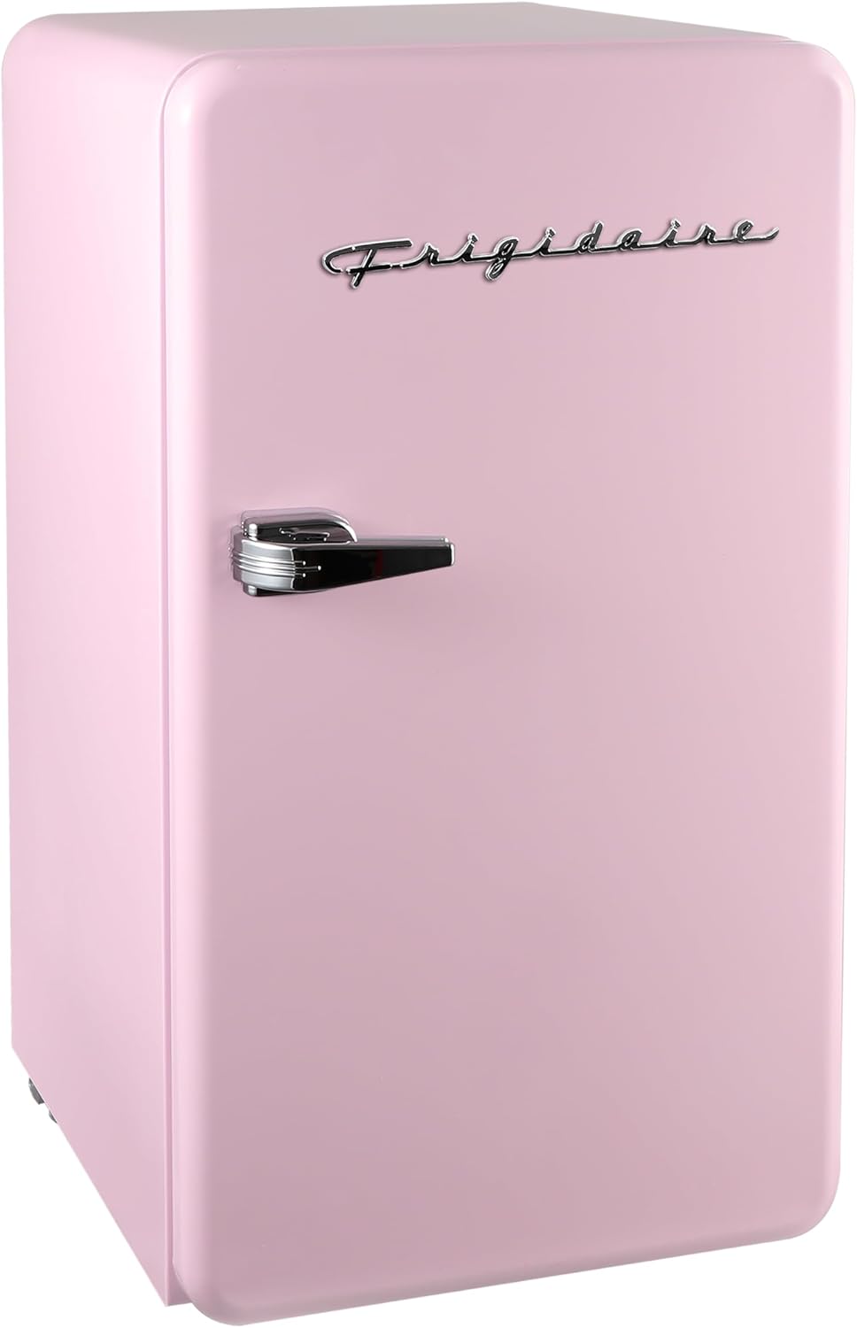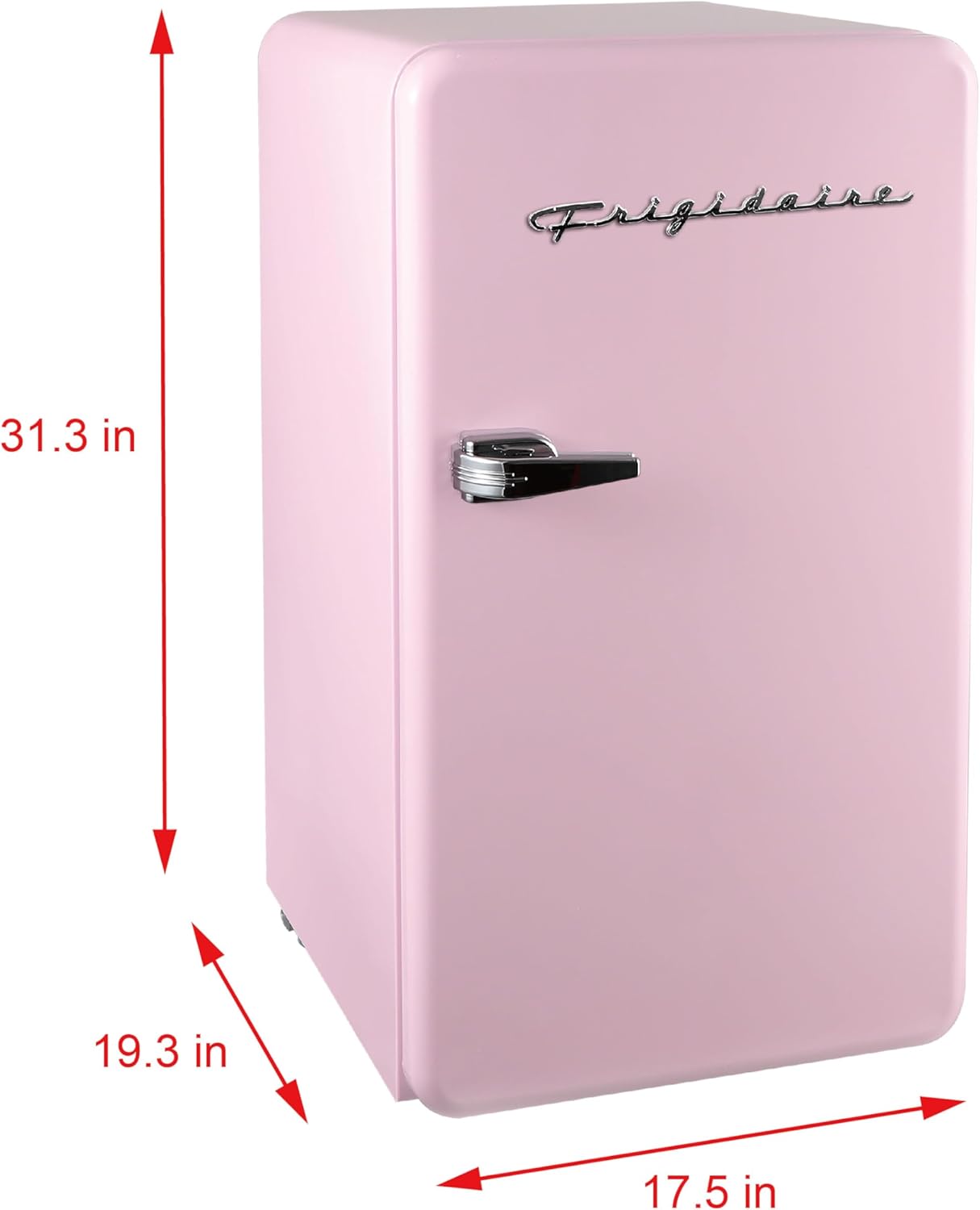 Frigidaire Retro Compact Refrigerator with Chiller, 3.2 cu ft Countertop Fridge, Built-In Bottle Opener, Rounded Corners, Premium, for Office, Bedroom, Dorm Room, Cabin, 18.5D x 20W x 31.5H (Pink)