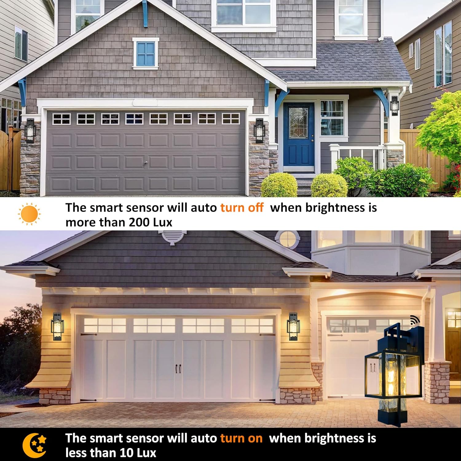 Dusk to dawn sensor: built-in IC light sensor in this outdoor wall light will detect the brightness of the surroundings. Auto turns on at night and Auto-off in the daytime, saving your money on electricity bills and freeing up your hands.