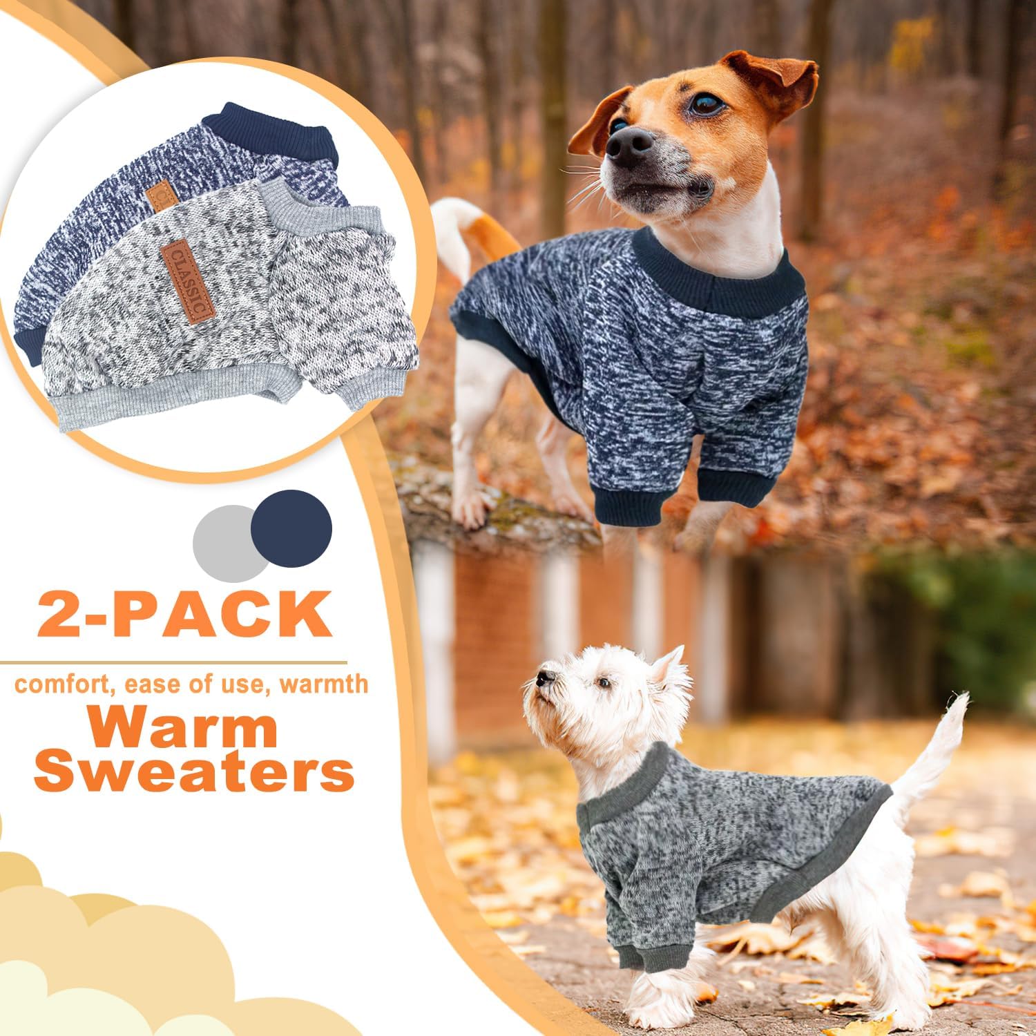 Keep your furry friend cozy and stylish during the chilly winter months with this set of two adorable dog sweaters.