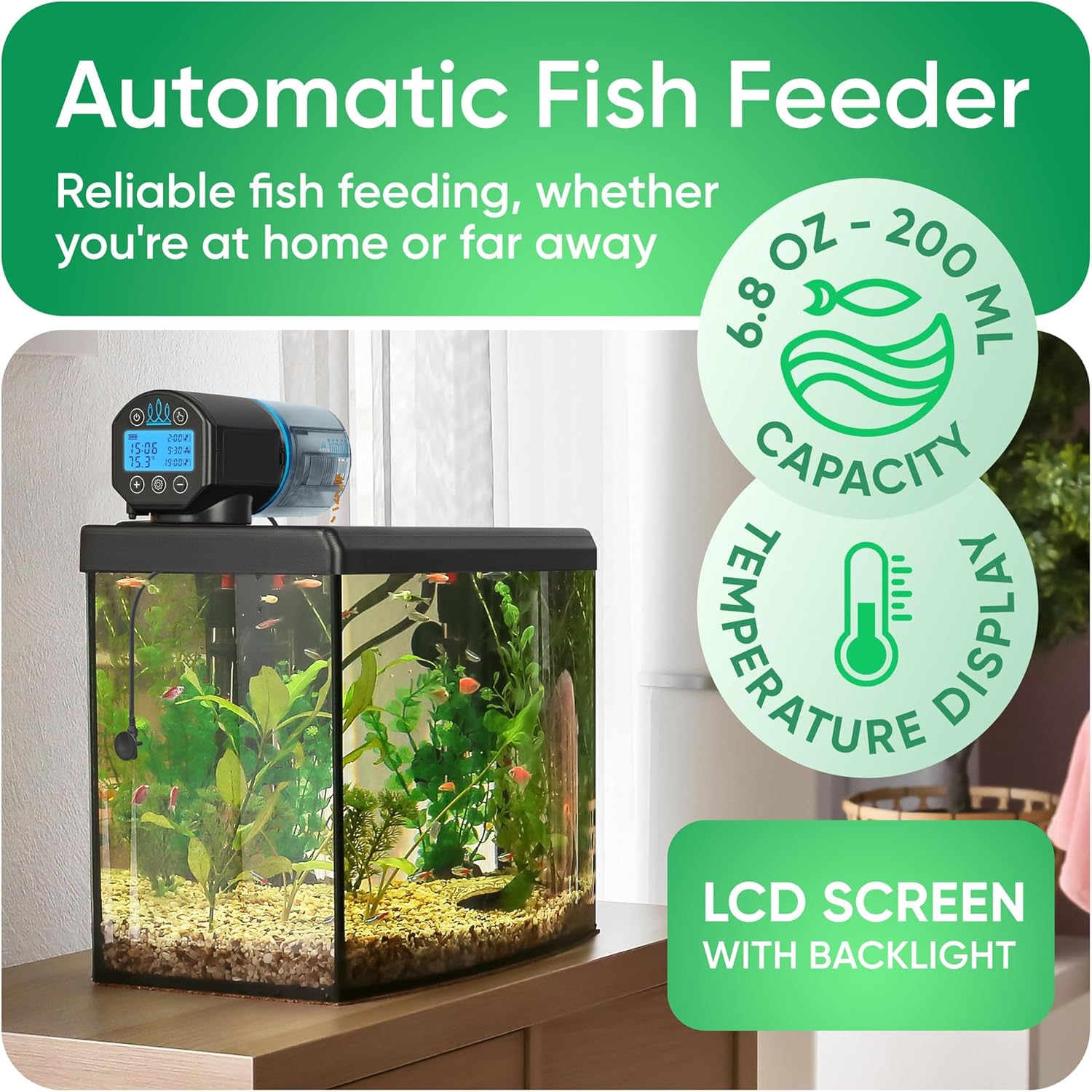 FISHNOSH Automatic Fish Feeder for Aquarium with Digital Thermometer – 2025 Auto Fish Food Dispenser Programmable, Vacation Feeder for Fish, Adjustable Portions, Auto Fish Feeder for Small & Big Tanks