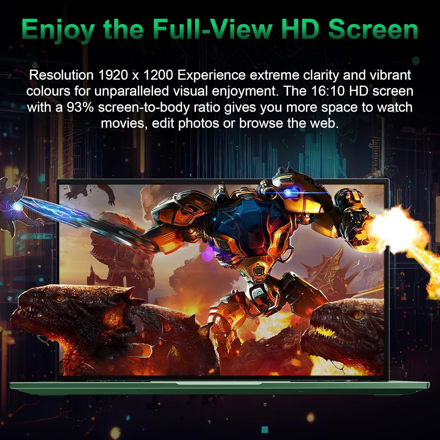 Stunning Visuals: This laptop computer features a 16 inch IPS FHD display with a 1920×1200 resolution and a 93% screen-to-body ratio. Enjoy vibrant colors and sharp details, all enhanced by the ultra-slim bezel design for an immersive viewing experience